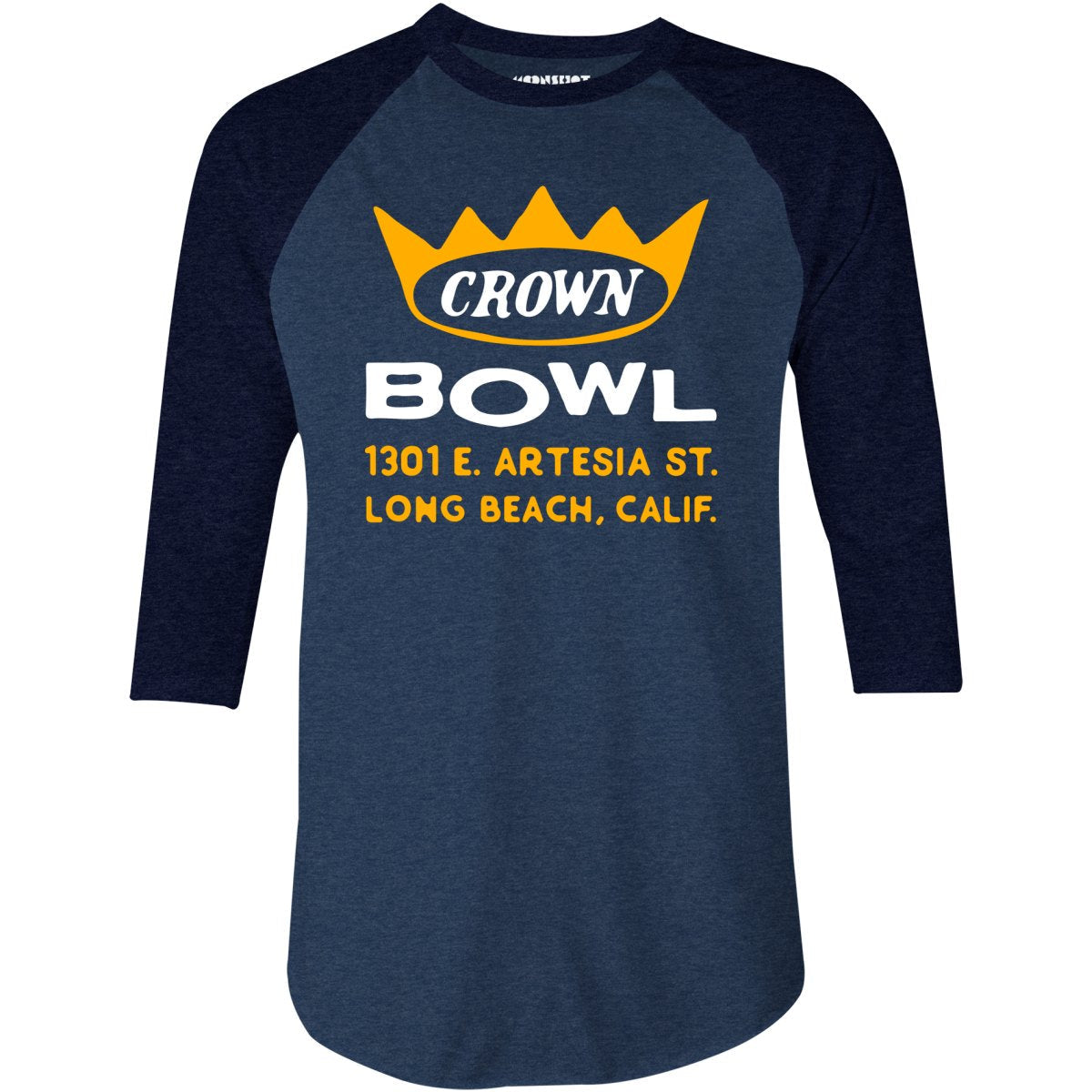 Crown Bowl - Long Beach, CA - Vintage Bowling Alley - 3/4 Sleeve Raglan T-Shirt
