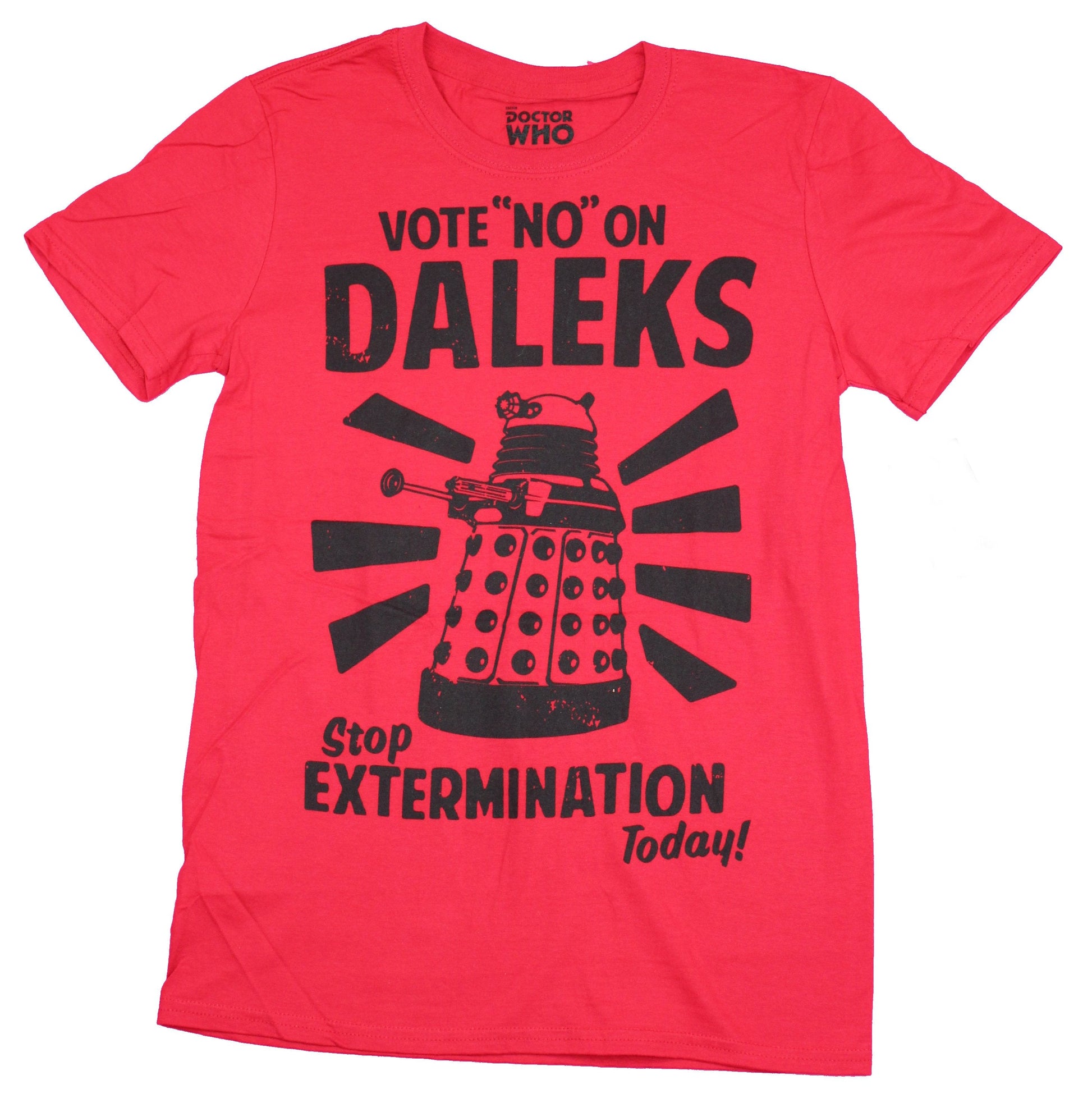Doctor Who Mens T-Shirt - Vote No on Daleks Stop Extermination Poster Image