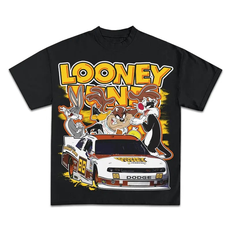 T*NES RACING GRAPHIC T-SHIRT Bootleg Vintage 90s Style Casual Classic clothing Cotton Fabric Menswear Top