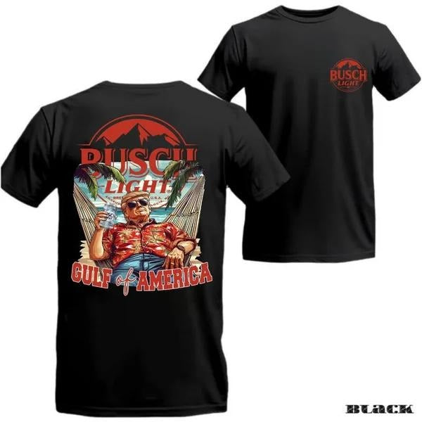 Two-sided Trump Busch Light T-shirt, Gulf Of America, Patriotic Beer Drinking Shirt, Funny Summer Graphic Tee, Trendy Outdoors Beer Lover Sweatshirt, Unisex Hoodie